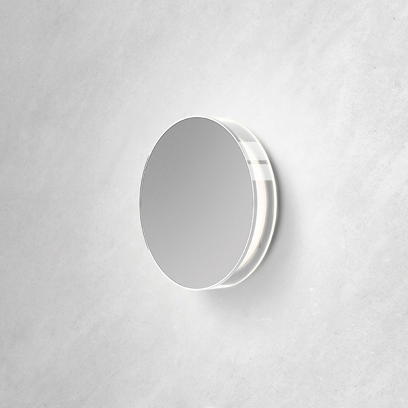 LYD ist mit vier unterschiedlichen Frontscheiben aus opalem Echtglas, silber- oder champagnerfarbenem Aluminium oder Spiegelglas erhältlich. Dahinter befinden sich kraftvolle LEDs, die ein gleichmäßiges und rundum abstrahlendes Flächenlicht auf der Wand erzeugen. Gleichzeitig reflektiert die Glaskante das Licht, wodurch die charakteristische Lichtlinie entsteht. LYD löst sich optisch vom Hintergrund und entfaltet eine angenehme, ruhige Lichtstimmung.